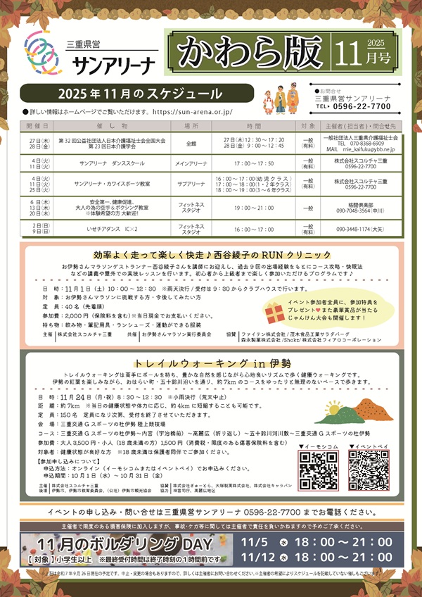 毎月発行している「かわら版」には、月毎のおすすめ情報や、イベント・スクール一覧を掲載しております。