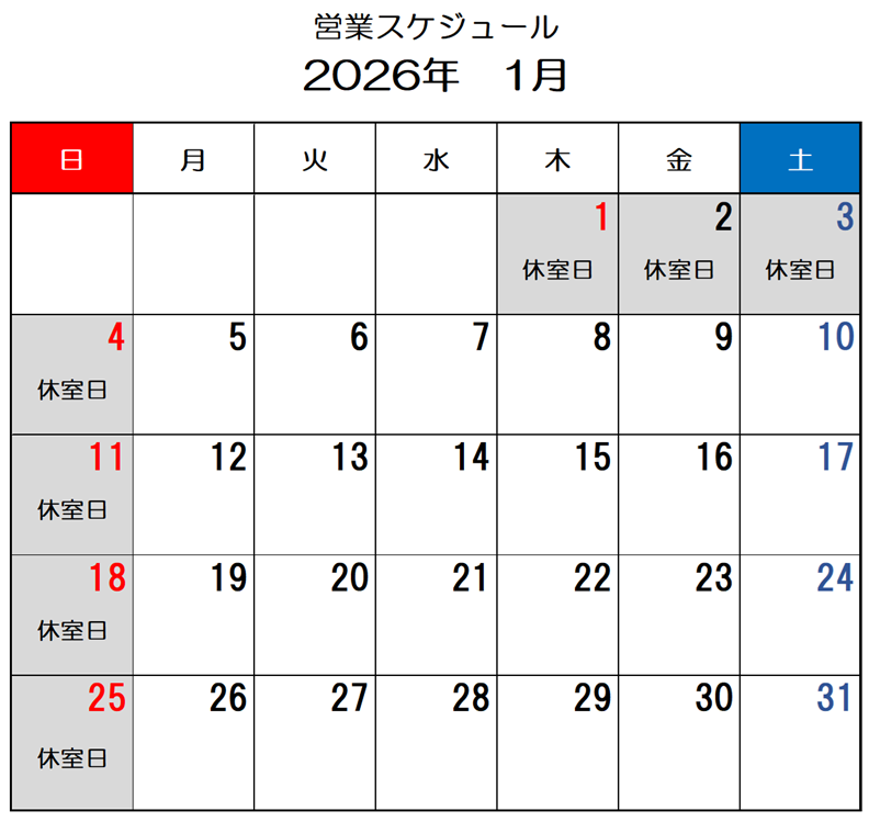 2026年1月 mets サンアリーナ GYM休室日
